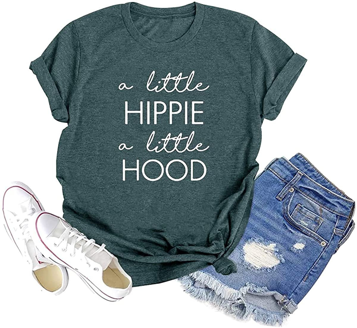 A Little Hippie A Little Hood Women Country Music Letter Print T-Shirt