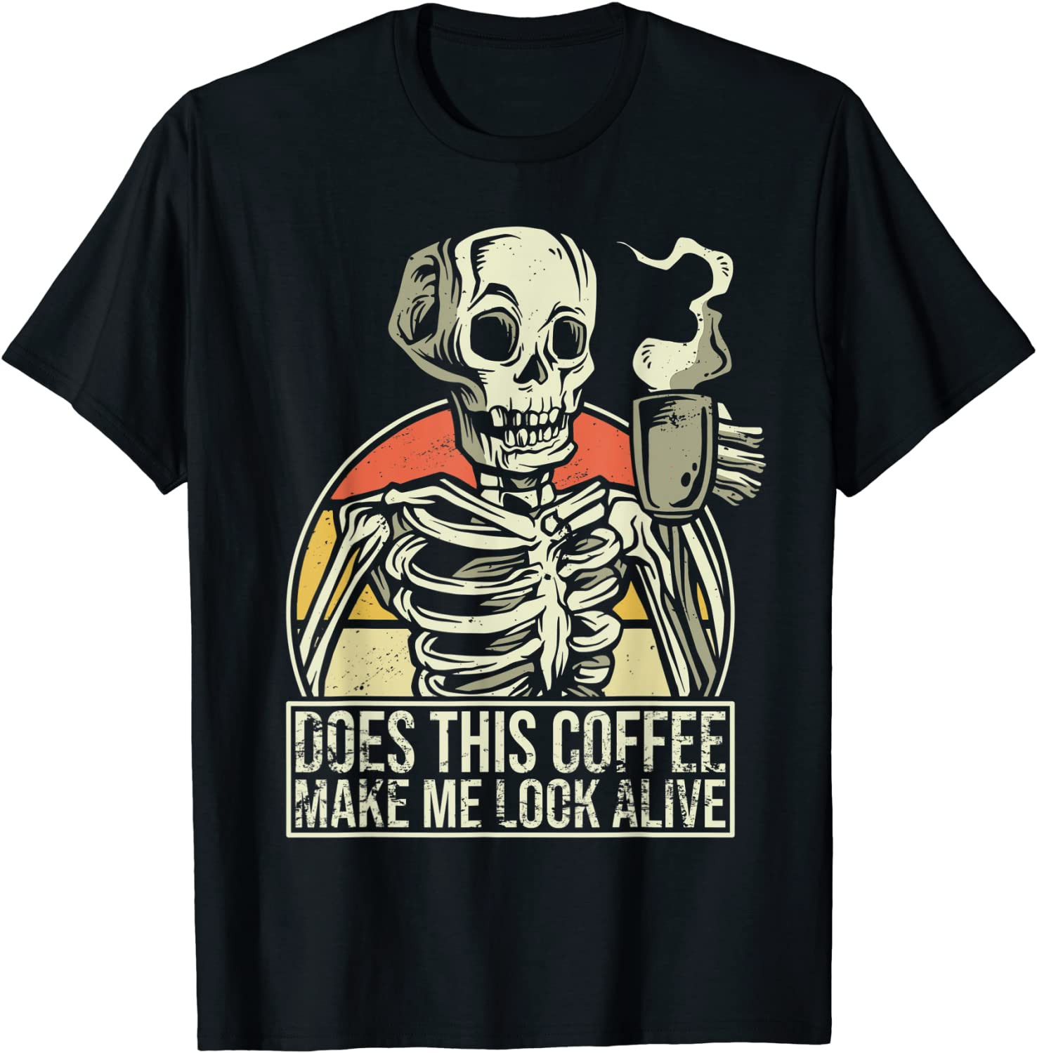 Coffee Drinking Skeleton Does This Coffee Make Me Look Alive T-Shirt