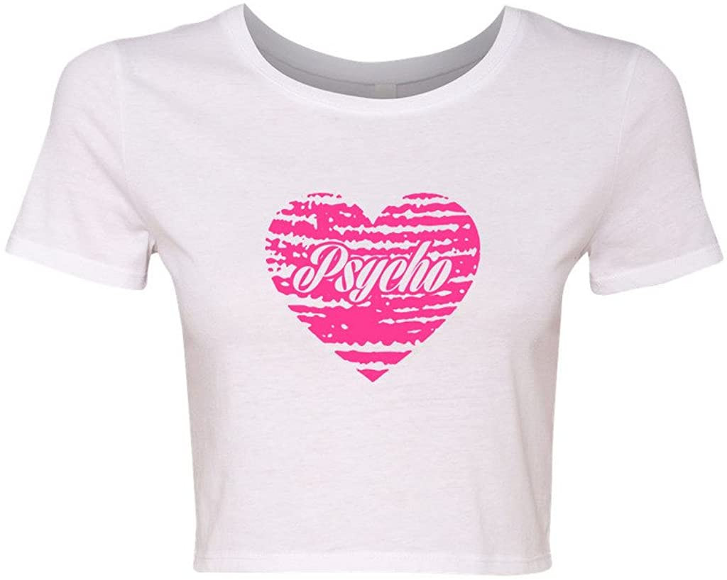 Crop Top Ladies Psycho Heart Love Pink T-Shirt