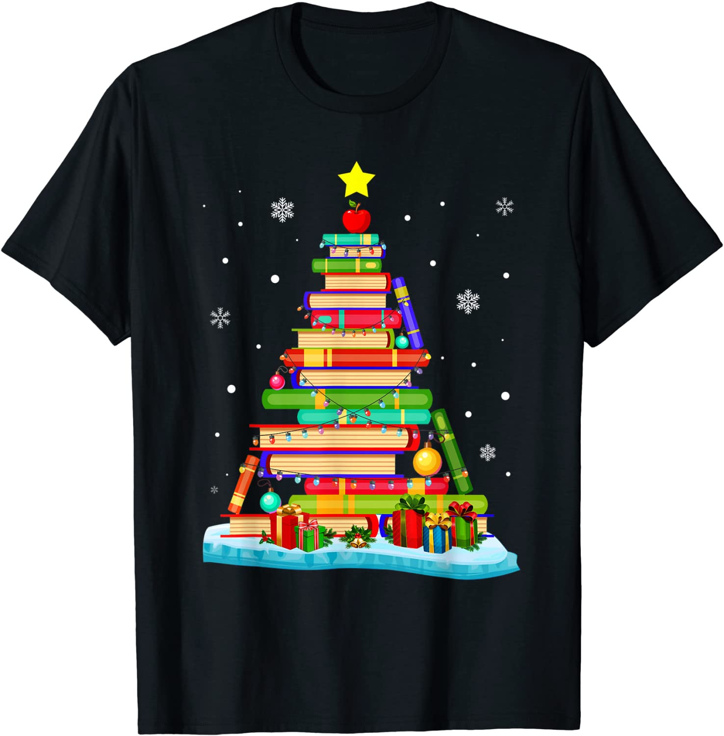 Cute Christmas Library Tree Xmas Trees From Book & Librarian T-Shirt