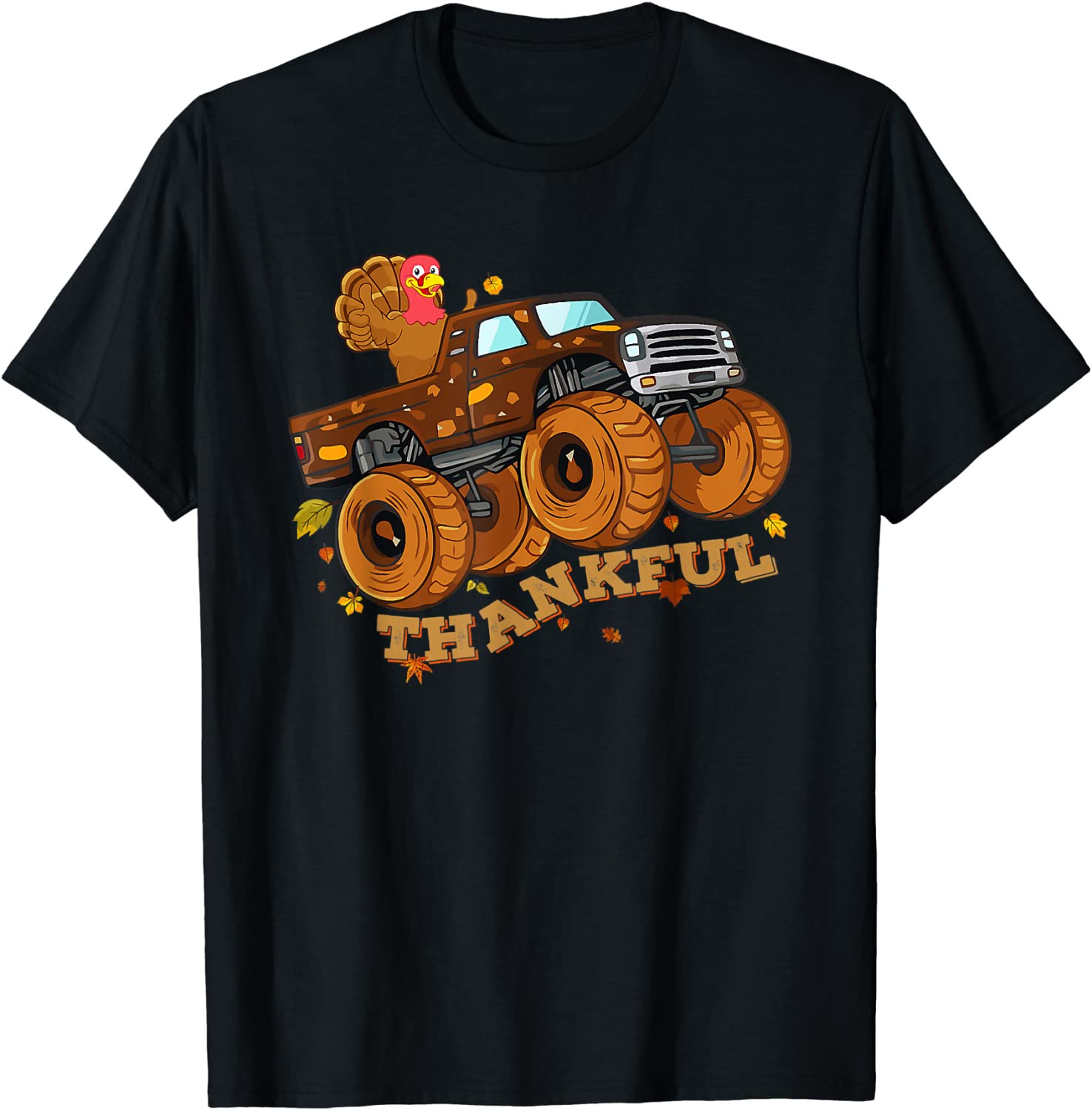 Funny Thanksgiving Turkey Day Riding Monster Truck Kids Boy T-Shirt
