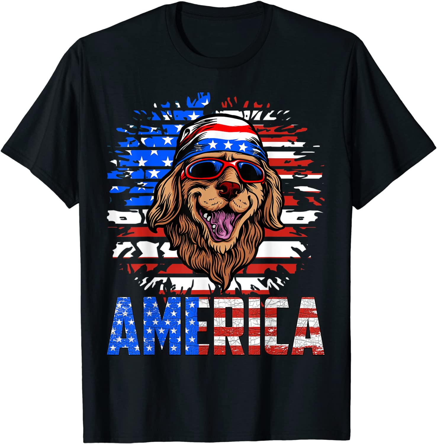 Golden Retriever America Patriotic Dog USA Flag Memorial Day T-Shirt