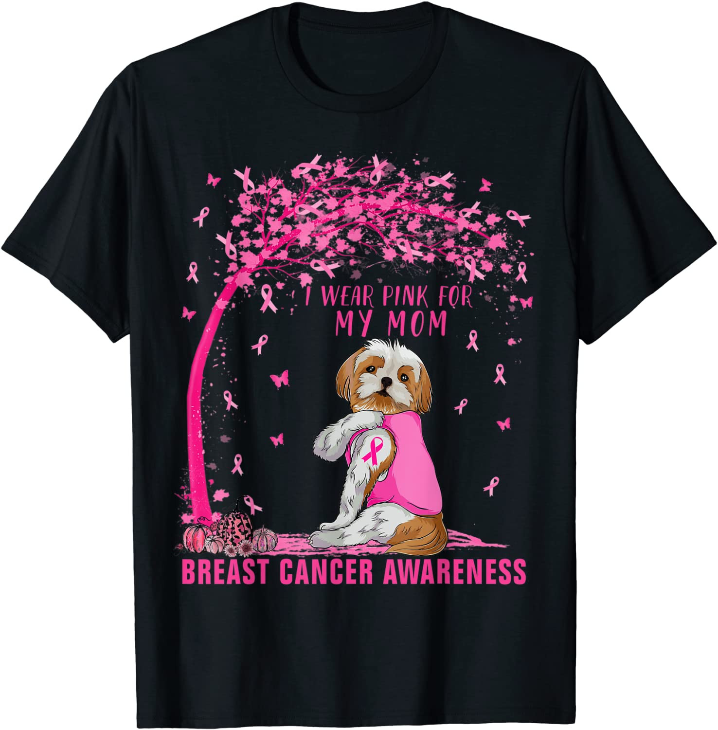 I Wear Pink For My Mom Shih Tzu Dog Breast Cancer Awareness T-Shirt